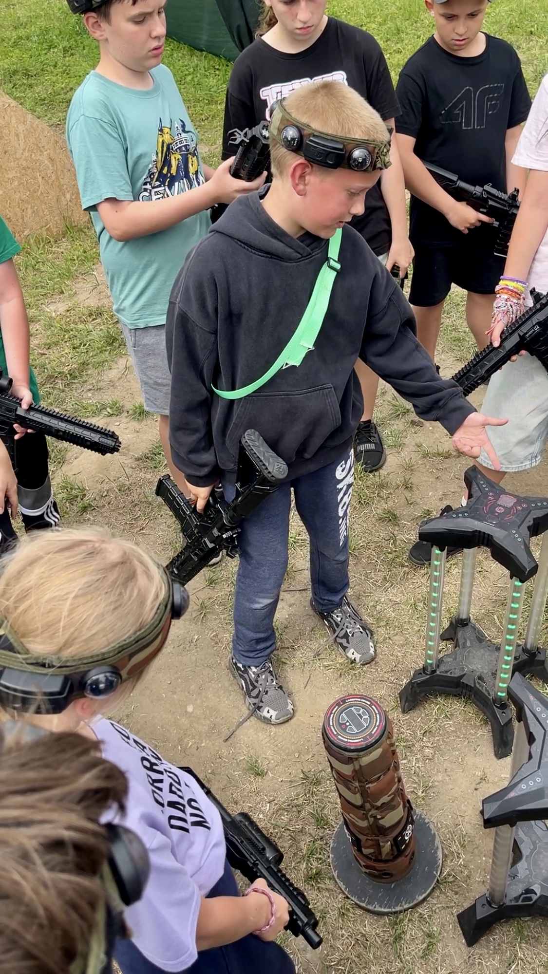 Rodzice + dzieci = drużyna, która gra razem, śmieje się razem i razem wraca z historiami do opowiadania. Najpierw biegacie po otwartej arenie, chowacie się za przeszkodami, kombinujecie taktykę… a potem siadacie przy ogniu. Kiełbaski na patyku, gorący napój w dłoni i to uczucie, że jesień naprawdę ma swój smak.